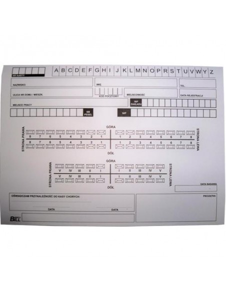 Karta zawiera wyczerpujące pytania i oświadczenia pacjenta. Opakowanie 100szt.