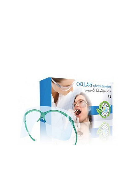 Okulary ochronne dla pacjenta zapobiegają urazom oka i okolicy oczu, które mogłyby nastąpić w wyniku działań występujących podczas zabiegów stomatologicznych.