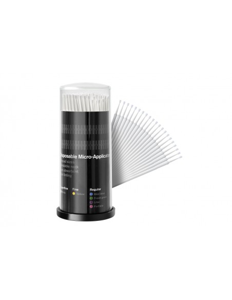 Pędzelki do precyzyjnej apliakcji preparatów stomatologicznych. Kompatybilne z wszelkiego rodzaju materiałami do wytrawiania, wybielania, fluoryzacji, systemami łączącymi itp. Wyposażone w plastikowy uchwyt z elastyczną, giętką szyjka, którą można doginać