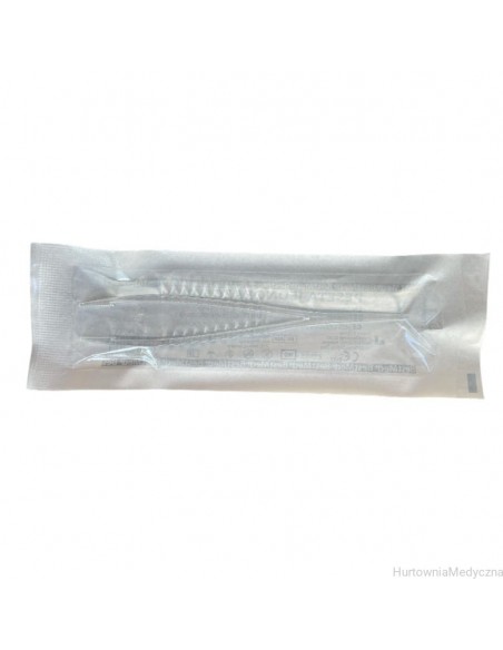 Pęseta jest sterylna, plastikowa, pakowana pojedynczo. Długość 12,5 cm. Stosowana przy drobnych zabiegach kosmetycznych i medycznych.