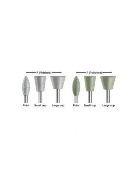 Gumki silikonowo-kauczukowe do opracowywania oraz do polerowania wypełnień z materiałów złożonych i amalgamatów. Politip P do ostatecznego polerowania powierzchni wypełnienia.