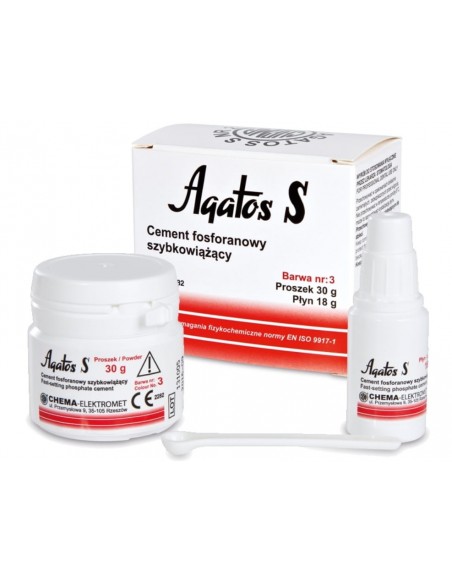 Cement fosforanowy szybkowiążący AGATOS S jest preparatem składającym się z proszku i płynu umieszczonych we wspólnym opakowaniu jednostkowym.