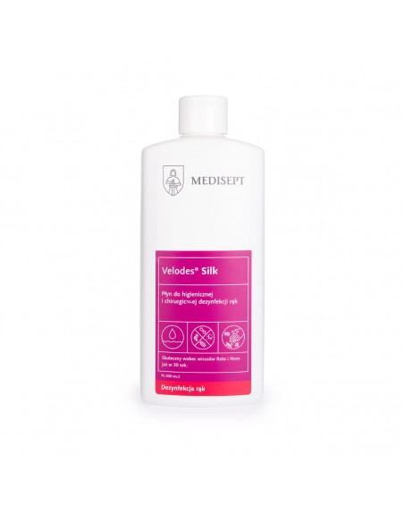 Velodes® Silk to alkoholowy, gotowy do użycia produkt przeznaczony do higienicznej i chirurgicznej dezynfekcji rąk. Wykazuje działanie bakteriobójcze, bójcze wobec prątków gruźlicy, drożdżakobójcze i wirusobójcze: Vaccinia, BVDV, HIV, HBV, HCV, COVID-19