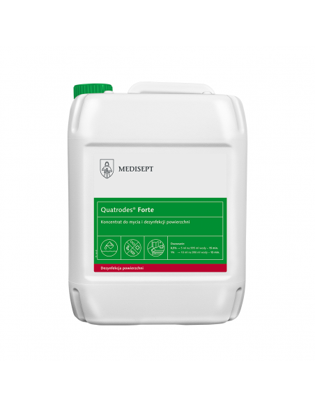 Quatrodes® Forte to wydajny koncentrat do jednoczesnego mycia i dezynfekcji nieinwazyjnego sprzętu medycznego jak unity, łóżka i fotele zabiegowe, stoły operacyjne, aparatura medyczna.