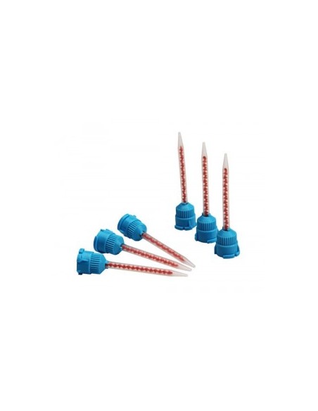 Końcówki służące do aplikacji materiałów mieszanych w strzykawkach (np. Max-Cem), gdzie wymagana jest proporcja 4:1. Komplet zawiera kańcówkę mieszającą + dziubek tzw.długi, wąski.