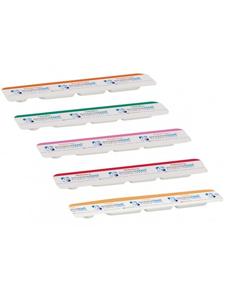 Enamelast Lakier fluorkowy 0.4 ml aromatyzowany, słodzony ksylitolem, 5% roztwór fluorku sodu,biała powierzchnia po aplikacji bez uczucia nieprzyjemnej chropowatości.