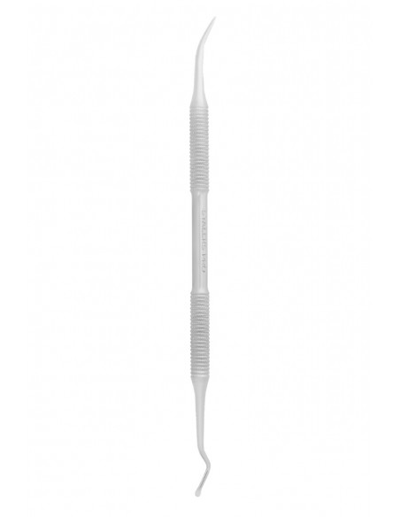 Prezentowana przez nas sonda podologiczna została wyposażona z jednej strony w wygięty kolec, natomiast z drugiej w miniaturowy półksiężyc, co pozwoli uskutecznić i usprawnić wykonywany zabieg.