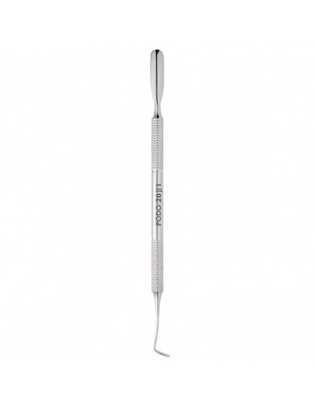 Kopytko do pedicure PODO 20 jest stosowane przez podologów w leczeniu suchych odcisków i wrośniętych paznokci. Cienka zakrzywiona część robocza idealnie się sprawdza przy usuwaniu martwych komórek nabłonka spod wolnej krawędzi paznokcia