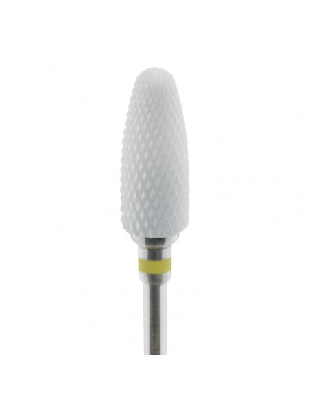Stożek. Usuwa delikatnie masę, nie powodując przy tym drgań. Bardzo dokładnie usuwa martwy naskórek. Idealny do szybkiego i bezpiecznego usuwania lakieru hybrydowego, resztek żelu bądź akrylu, nie uszkadzając przy tym płytki paznokcia.