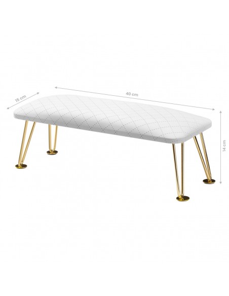 Profesjonalna podpórka do manicure 6M to klasyczna podpórka pod dłoń. Obicie wykonano z ekoskóry a nóżki z chromowanej stali w lolorze złotym. Powierzchnie metalowe lakierowane. Odpowiednia wysokość podpórki zapewnia wygodną pozycję.
