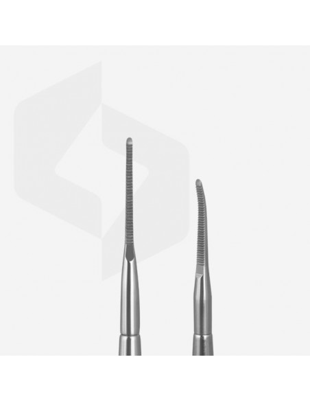 Łopatka do pedicure (cienki pilnik prosty + cienki pilnik zakrzywioną końcówką). Część robocza „Pilnik wąski” przeznaczona jest do pracy z wrastającym paznokciem. „Pilnik z zakrzywionym końcem” pozwala na pracę w trudno dostępnych miejscach.