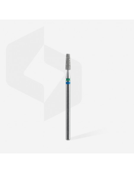Frez diamentowy do manicure/pedicure frezarkowego. Niebiesko-zielony frez o średnio-grubej ziarnistości do delikatnej obróbki skóry. Kształt „ściętego stożka” do obróbki powierzchni naturalnego i sztucznego pokrycia.