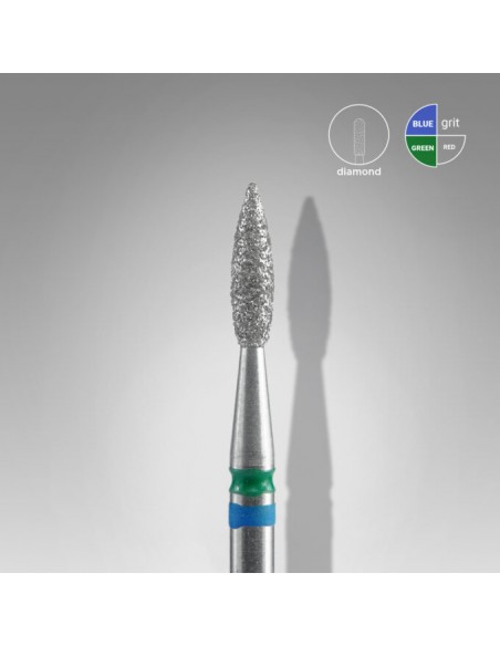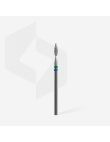 Niebiesko-zielony frez o średnio-grubej ścieralności jest idealne do delikatnego obrabiania skóry. Manicure: podnoszenie i usuwanie skórek. Obróbka wałka bocznego. Opracowanie sinusów w paznokciach. Pedicure: Leczenie pęknięć, modzeli.