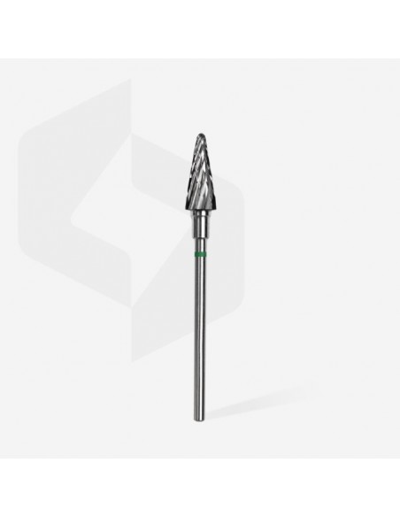 Stożek. Zielone nacięcie o grubej ziarnistości, oznacza gruboziarniste pionowe i poprzeczne cięcie. Nadaje się do korekcji sztucznych paznokci, usuwania sztucznego materiału, obróbki skóry stóp i poduszek palców.