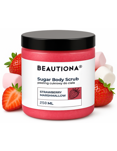 Peeling cukrowy do ciała o zapachu truskawkowej pianki. Zawiera drobne kryształki cukru, które delikatnie usuwają martwy naskórek, odsłaniając promienną skórę. Wzbogacony o olej ze słodkich migdałów, intensywnie nawilża i regeneruje.