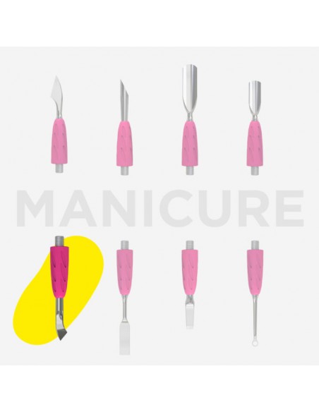 „Ostrze wygięte” ma wygodny kąt nachylenia i jest przeznaczona do opracowywania zatok, unoszenia twardej i mocno przyrośniętej skórek podczas wykonywania manicure i pedicure.