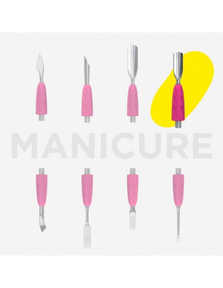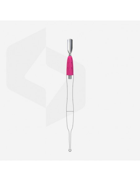 „Popychacz wąski zaokrąglony” jest przeznaczony do unoszenia i odsuwania skórek w celu ich dalszego usunięcia podczas wykonywania manicure i pedicure.