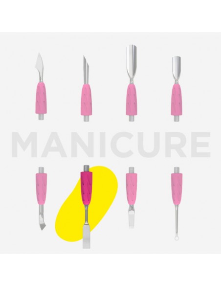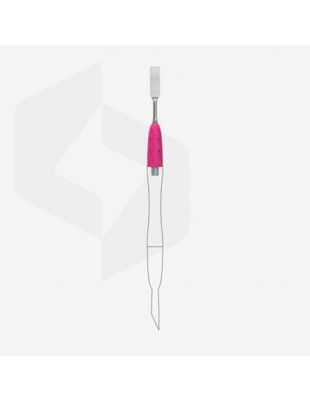 „Popychacz płaski prosty” przeznaczony do unoszenia i odsuwania skórek w celu dalszego usunięcia podczas wykonywania manicure i pedicure. Dzięki prostokątnemu kształtowi idealnie sprawdza się w pracy w strefie zatok.