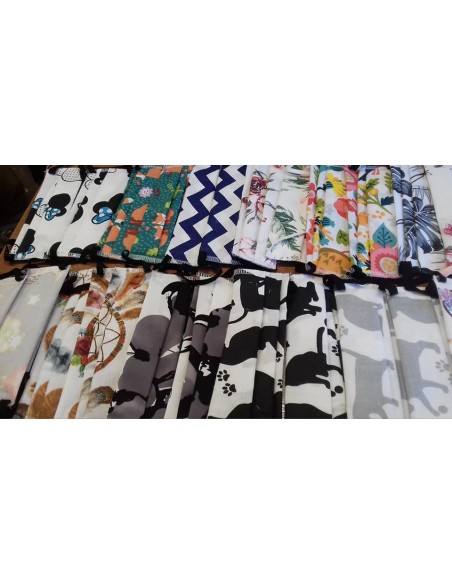 Maseczka wielokrotnego użytku (można prać i pasować). Od strony wewnętrznej znajduje sie kieszonka w której można umieścić dodatkowy filtr) Szerokość materiału ok17cm + gumki do założenia na uszy