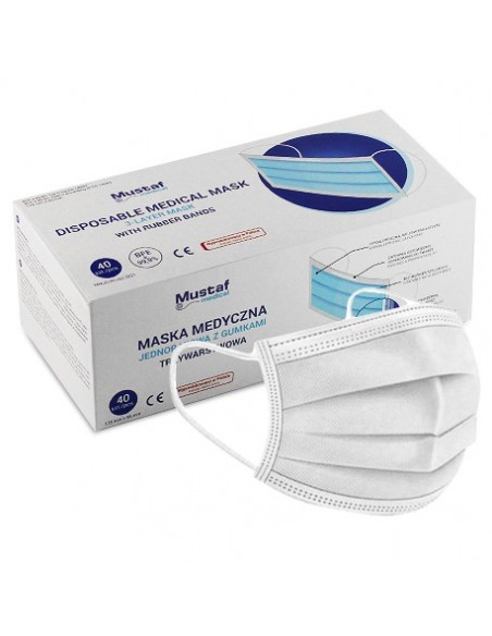 Trzywarstwowe ochronne maseczki chirurgiczne niejałowe, jednorazowego użytku 40szt.
