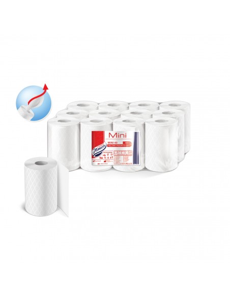 Ręczniki przemysłowe PuraLine MINI i MAXI wykonane są w 100% z czystej białej bibułki celulozowej. Dodatkowo biała perforowana tulejka oraz ozdobne romby z zewnętrznej strony wstęgi tworzą produkt bardzoelegancki. 12 sztuk w zgrzewce.