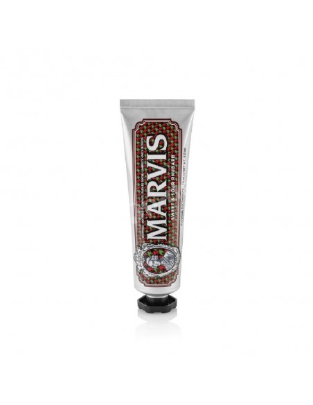 Pasta Marvis Sweet and Sour Rhubarb to słodko-kwaśne połączenie rabarbaru i chłodzącej mięty. Pasta chroni zęby przed próchnicą i delikatnie wybiela zęby. Zawiera fluor i ksylitol.