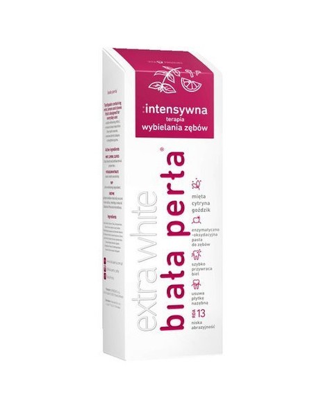 Wybielająca pasta do zębów Biała Perła Plus Intensywna Terapia zapewnia przyspieszony efekt wybielania. Pasta szczególnie jest polecana dla osób, które pragną wysokiej jakości wybielania w krótkim czasie.