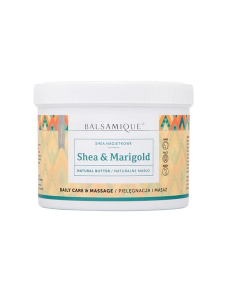 Naturalne masło shea nagietkowe przeznaczone do masażu całego ciała, szczególnie polecane do zabiegów i pielęgnacji skóry suchej.