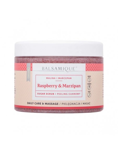 Peeling cukrowy malinowo-marcepanowy to peeling do ciała, który w swoim składzie zawiera roślinne składniki eksfoliujące: kryształki cukru trzcinowego oraz zmielone pestki moreli. Dzięki nim zabieg złuszczający jest skuteczny i komfortowy.