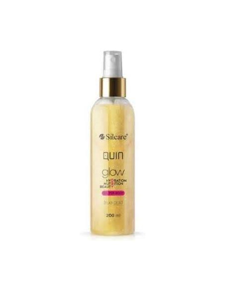 Quin Glow Dry Oil to suchy olejek do ciała z drobinkami złota. Bardzo szybko się wchłania, nie pozostawia odczucia lepkości i nie zatyka porów.