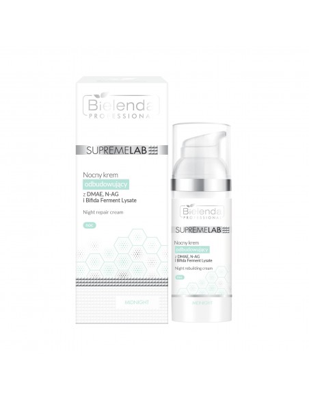 Nocny krem odbudowujący z DMAE, N-AG i Bifida Ferment Lysate to profesjonalny produkt do pielęgnacji skóry dojrzałej, suchej, odwodnionej i zmęczonej, wymagającej regeneracji. DMAE, zamknięty w biopolimerowej kapsułce, zapewnia efekt soft-liftingu.