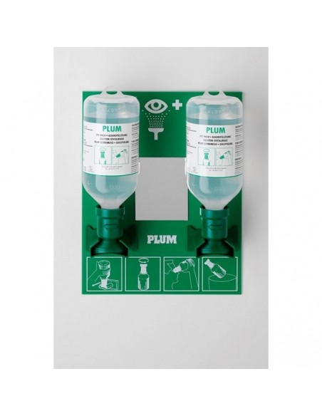 Stacja otwarta Plum Eye Wash z dwiema butelkami NaCl 0,9%, 500ml do zawieszenia na ścianę. Doskonała w miejscach pracy.