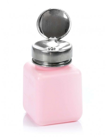 Butelka z pompką metalową i plastikowym pojemnikiem 120 ml, na wszystkie płyny. Znacznie ułatwia pracę, dzięki wygodnej aplikacji płynów na płatek kosmetyczny lub wacik, niezbędna w każdym gabinecie.