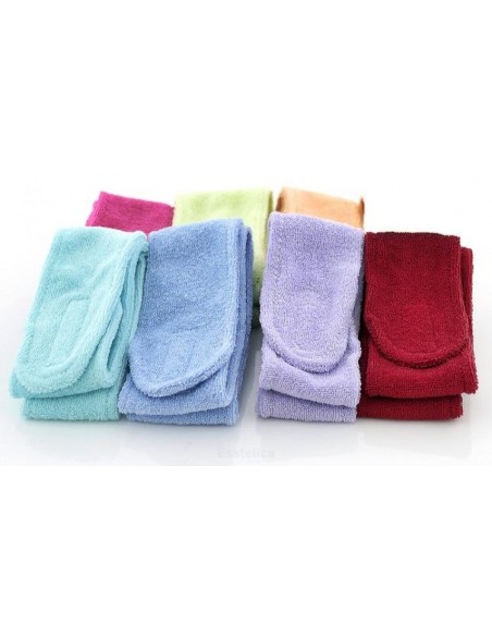 Opaska kosmetyczna welurowa o wymiarach 65x5cm zapinana na rzep o wymiarac 3x6 cm,co umożliwia dopasowanie obwodu opaski do obwodu głowy.