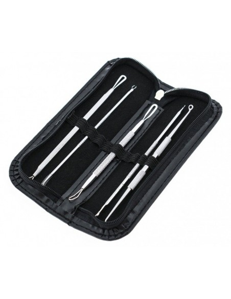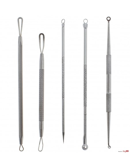 Profesjonalne łyżeczki Unny ze stali nierdzewnej do pracy przy zaskórnikach i innych zanieczyszczeniach oraz przy kosmetycznym oczyszczaniu twarzy przy podstawie kostnej.