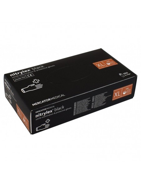 Jednorazowe rękawice medyczne nitrylowe Nitrylex® PF Black przeznaczone są do jednorazowego użytku, oburęczne, niejałowe. Zabezpieczają skórę rąk przed działaniem substancji chemicznych i bakteriami, cieczami i zabrudzeniem.