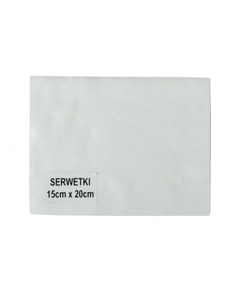 Serwetki kosmetyczne Rozmiar: 15x20cm Materiał:miękka włóknina dobrze wchłaniająca wodę Kolor: biały Opakowanie: 100szt