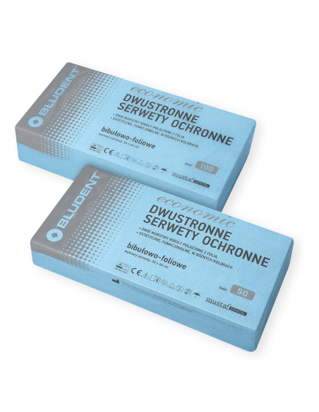 Dwie warstwy chłonnej bibuły przedzielone warstwą folii PE. Odporne na rozerwanie, miłe w dotyku, ekonomiczne w użyciu.