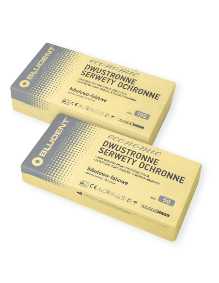 Dwie warstwy chłonnej bibuły przedzielone warstwą folii PE. Odporne na rozerwanie, miłe w dotyku, ekonomiczne w użyciu.