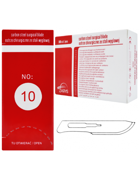 Ostrza chirurgiczne wykonane z wysokiej jakości stali węglowej. Jałowe, sterylizowane radiacyjnie promieniami Gamma i pakowane pojedynczo w folię aluminiową. Na każdym ostrzu znajduje się oznaczenie rozmiaru.