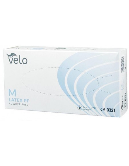 Rękawiczki Velo- niesterylne jednorazowe rękawice diagnostyczne lateksowe bezpudrowe. Kształt uniwersalny pasujący na prawą i lewą dłoń. Równomiernie rolowany brzeg mankietu. Mikroteksturowane z dodatkową teksturą na końcach palców.