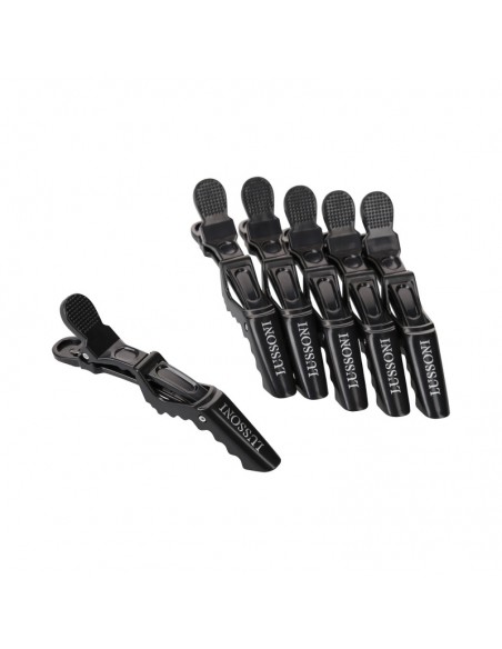 Klipsy fryzierskie plastikowe - 6szt. Klipsy krokodylki ułatwią pracę każdego stylisty włosów. Specjalnie zaprojektowany kształt sprawia, że klipsy bez trudu utrzymują nawet grube i ciężkie pasma włosów. Są wykonane z trwałego materiału. Wąski języczek.
