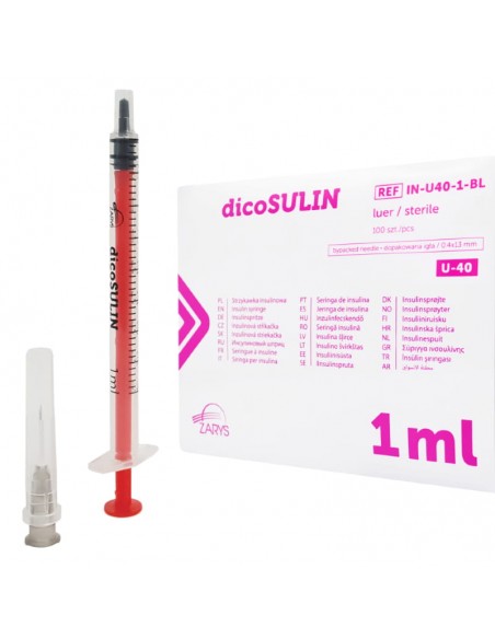 Strzykawka insulinowa Zarys Dicosulin 1ml U40 z igłą 0,4x13mm 100sz/op