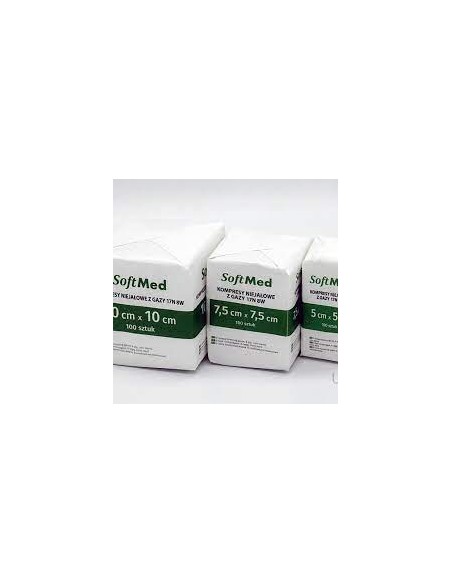 Niejałowe kompresy z gazy opatrunkowej 17-nitkowej, 8 warstwowej.