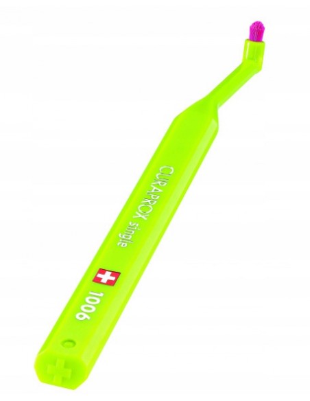 Szczoteczka jednopęczkowa Curaprox CS 1006 czyści delikatnie i gruntownie okolicę przyszyjkową i trudno dostępne powierzchnie za trzonowcami. Łagodna i delikatna, idealna do czyszczenia pojedynczych zębów, bruzd zębowych oraz okolicy przyszyjkowej.