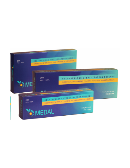 Torebki do sterylizacji MEDAL są polskim produktem najwyższej jakości.Samoprzylepne torebki foliowo - papierowe wykonane zostały z papieru medycznego o gramaturze 60g/m2 i wielowarstwowej folii PET/CPP.